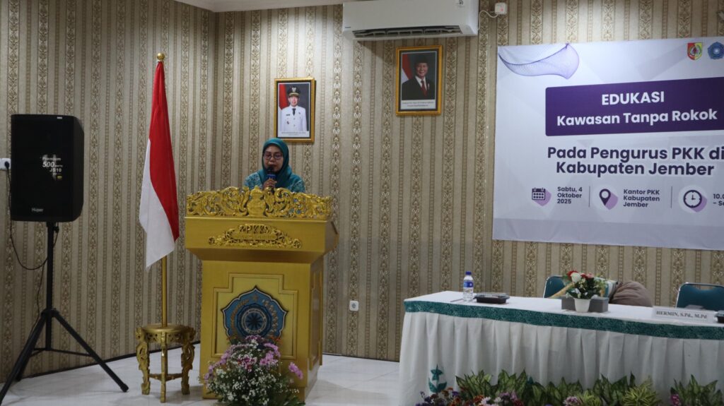 Dr. Nuryadi, S.KM.,M.Kes. bersama Tim Fakultas Kesehatan Masyarakat menggalakkan edukasi KTR kepada salah satu kelompok strategis yang memiliki peran penting dalam edukasi kesehatan, yakni Pemberdayaan Kesejahteraan Keluarga (PKK) Kabupaten Jember. Kegiatan bertajuk “Edukasi Kawasan Tanpa Rokok kepada Pengurus PKK di Kabupaten Jember” dilaksanakan pada hari Sabtu, 4 Oktober 2025. Iken Nafikadini, S.KM.,M.Kes. melaporkan kegiatan tersebut dihadiri oleh 25 Pengurus PKK Kabupaten Jember di Aula PKK Kabupaten Jember dan 180 Pengurus PKK Kecamatan di Kabupaten Jember melalui zoom meeting.