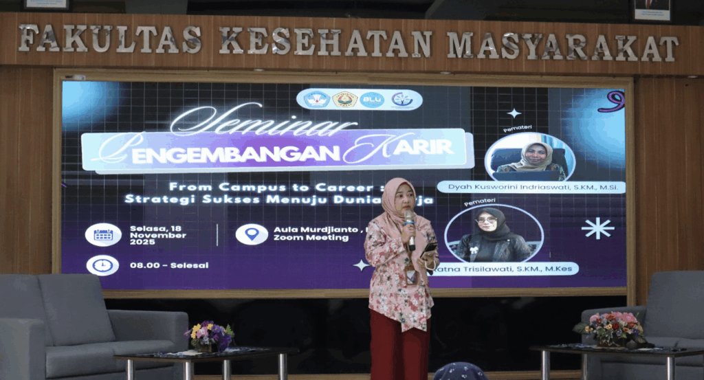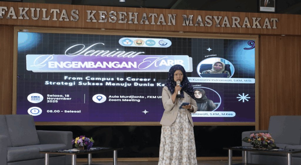 Di era yang serba cepat ini, keberhasilan memasuki dunia kerja tidak hanya ditentukan oleh nilai akademik, tetapi juga oleh kemampuan membaca peluang, membangun portofolio yang kuat, serta memiliki strategi karir yang jelas. Mahasiswa perlu membekali diri sejak awal dengan soft skills, kemampuan bekerja dalam tim, serta jejaring yang relevan dengan minat karirnya. Menjelang kelulusan, hal-hal seperti penyusunan CV yang menarik, portofolio kerja, hingga kemampuan menghadapi wawancara kerja menjadi aspek penting yang harus diperhatikan. Selain itu, tidak semua lulusan langsung terjun ke dunia kerja. Sebagian memilih melanjutkan pendidikan ke jenjang magister (S2), yang tentu memerlukan perencanaan matang baik dari sisi waktu, motivasi, maupun kesiapan akademik. Dengan pemahaman yang baik, mahasiswa dapat menentukan langkah mana yang paling sesuai dengan tujuan karir jangka panjang.Melalui kegiatan From Campus to Career 2025 ini, peserta akan memperoleh pemahaman menyeluruh mengenai strategi memasuki dunia kerja secara efektif. Para praktisi dan alumni yang telah sukses meniti karir di bidang kesehatan masyarakat akan berbagi pengalaman, memberikan tips konkret, serta membuka wawasan tentang beragam peluang profesi yang dapat dijajaki. Diharapkan, kegiatan ini tidak hanya menjadi ajang berbagi pengetahuan, tetapi juga menjadi ruang bagi mahasiswa untuk merencanakan karir secara lebih terarah, percaya diri, dan siap berkompetisi di dunia profesional.