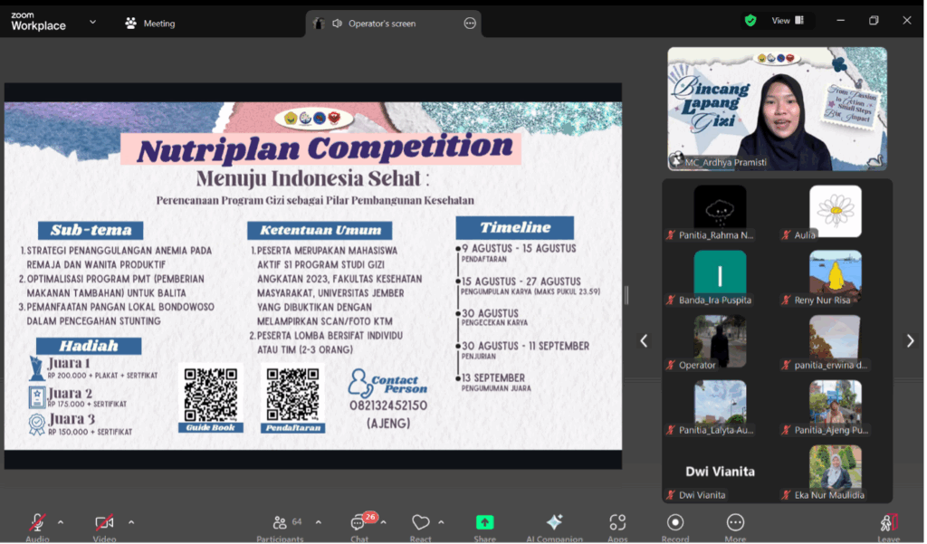 Kemudian memasuki sesi penutupan dilakukan post-test oleh seluruh peserta, untuk mengukur sejauh apa pemahaman peserta setelah diberikan materi mengenail PBL dan pk. Setelah itu MC menjelaskan mekanisme lomba “Nutriplan Competition”. Lomba ini merupakan sebuah kompetisi penyusunan program intervensi gizi. Pada perlombaan ini peserta diajak untuk mengidentifikasi permasalahan gizi di masyarakat, menganalisis penyebab utama dan merancang intervensi sistematis dan berkelanjutan. Kompetisi ini betujuan melatih mahasiswa untuk berpikir kritis, komunikasi efektif dan kolaborasi tim yang sangat dibutuhkan di dunia kerja. Setelah pembacaan mekanisme lomba dilanjutkan dengan mengisi evaluasi acara oleh peserta dan penutupan oleh MC, lalu yang terakhir evaluasi panitia.
