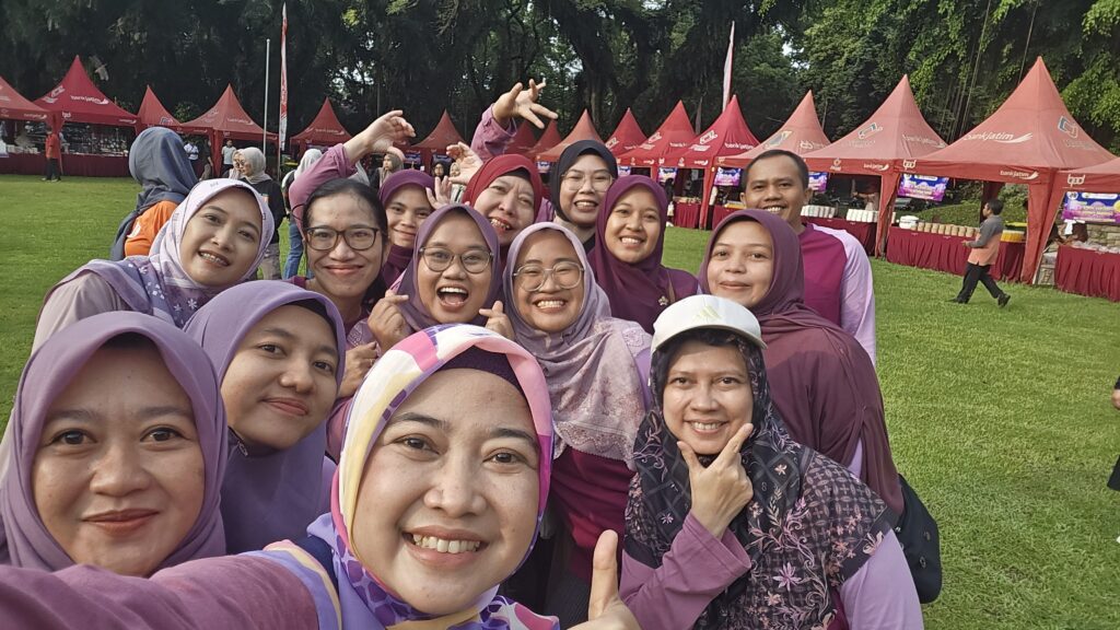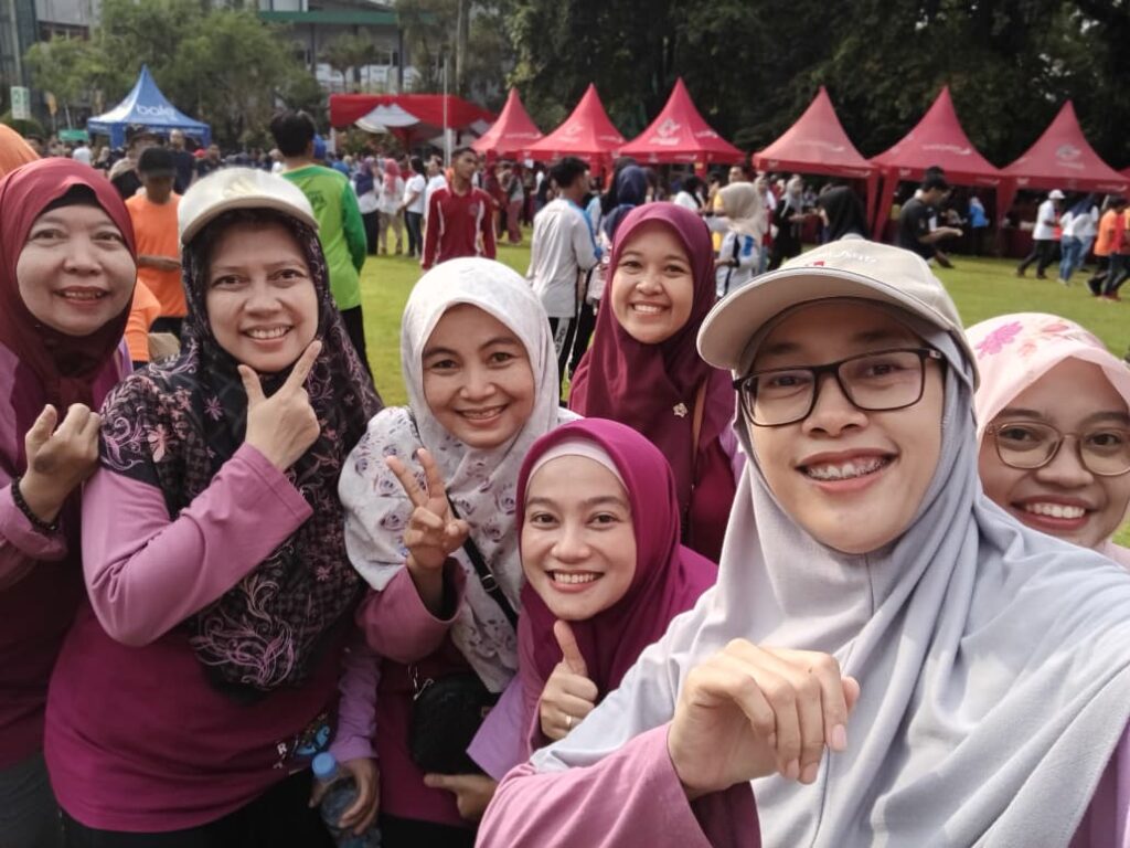 Rombongan FKM tampak antusias mengikuti seluruh rangkaian acara. Dosen dan tenaga kependidikan (tendik) FKM berbaur bersama peserta dari fakultas dan unit lain.