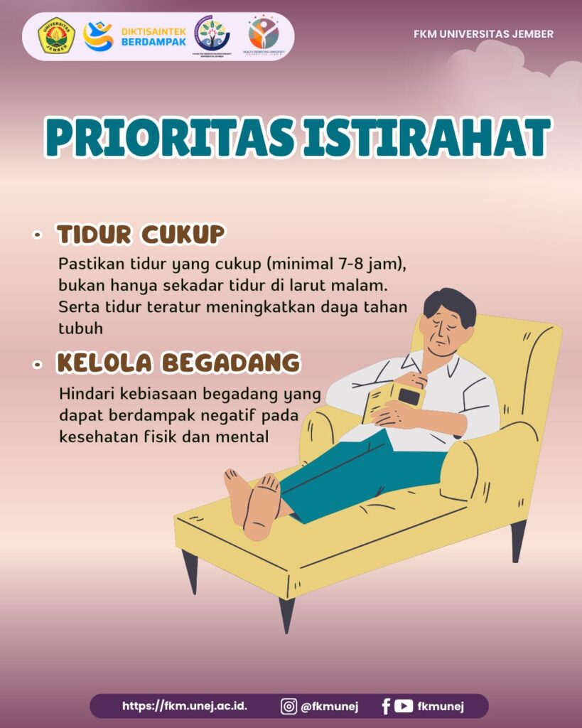 Di tengah kesibukan, tidur cukup minimal 7-8 jam sangat krusial untuk meningkatkan daya tahan tubuh. Hindari begadang karena kebiasaan ini berdampak negatif pada kesehatan fisik maupun mental.