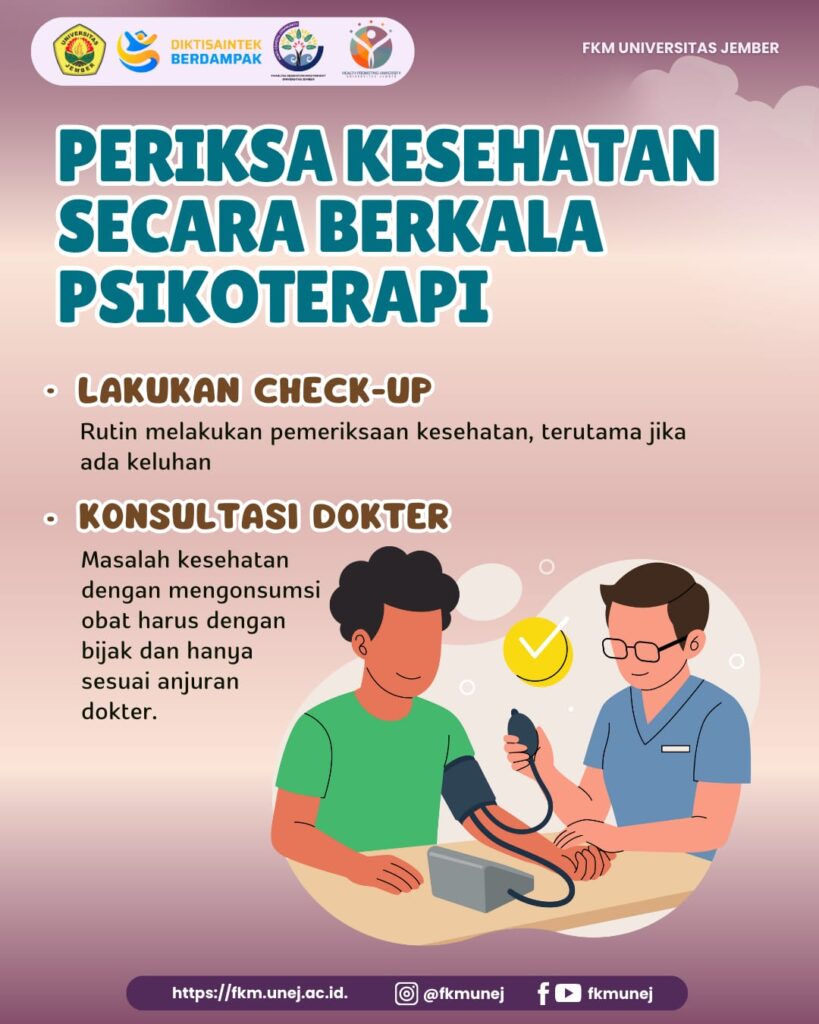 Jika mengalami keluhan kesehatan, segera lakukan pemeriksaan ke dokter dan konsumsi obat secara bijak sesuai anjuran. Dengan menerapkan pola hidup sehat ini, diharapkan seluruh civitas akademika dapat menutup semester dengan semboyan: “Badan Fit, Produktivitas Melejit”.