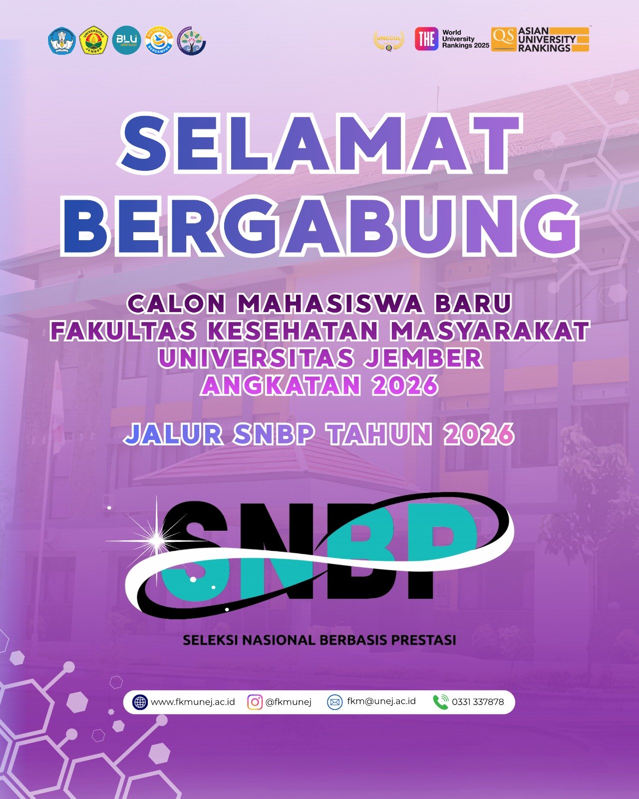Selamat atas keberhasilan kalian menembus ketatnya persaingan Seleksi Nasional Berdasarkan Prestasi (SNBP) 2026. Diterima di Fakultas Kesehatan Masyarakat Universitas Jember (FKM UNEJ) bukanlah hal yang mudah. Ini adalah bukti nyata dari konsistensi, kerja keras, dan dedikasi kalian sejak awal menginjakkan kaki di bangku SMA. Tepuk pundak sendiri dulu, ya, kalian keren banget!