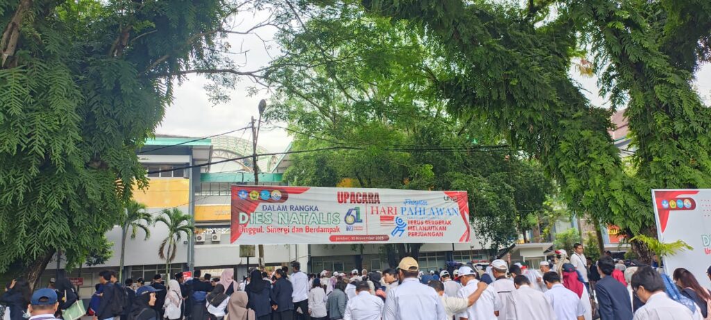 Universitas Jember (UNEJ) menggelar upacara bendera yang khidmat dan penuh makna hari ini di Lapangan Utama Kampus Tegalboto, merayakan dua momen bersejarah sekaligus: Peringatan Hari Pahlawan Nasional dan Dies Natalis ke-61 Universitas Jember.